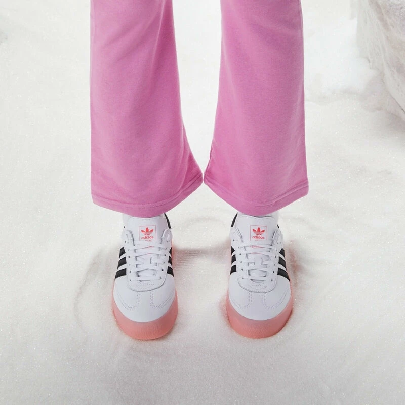 Give your Valentine’s Day wardrobe a fresh update with the Adidas Sambarose Valentine. This stylish sneaker has been designed for fashionable on-the-go lifestyles, featuring subtle design touches that add to the looks of this revamped Samba. The quarter panel boasts small red hearts nestled against black leather three-stripes, creating a unique and eye-catching effect. Work this style up or down with its sleek Glory Pink outsole and platform midsole, complete with even more hearts embedded beneath them. Step into comfort this season with the Adidas Sambarose Valentine!